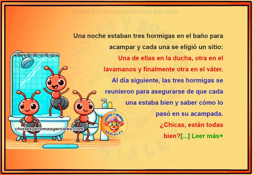 ¡No te pierdas el chiste de las tres hormigas acampando en el baño! Descubre cómo una noche tranquila se convierte en una aventura hilarante. #Humor #Chistes #Risas #ChistesDivertidos #Divertido #AnécdotasGraciosas #SituacionesCómicas