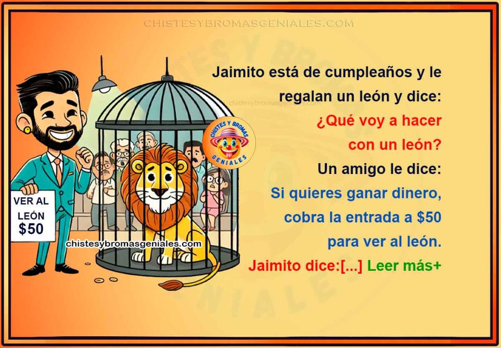 ¡No te pierdas el chiste de Jaimito y el león! Descubre cómo Jaimito convierte un regalo inesperado en una oportunidad de negocio. ¡Ríete con nosotros! #Humor #Chistes #Risas #ChistesDeJaimito #Divertido #AnécdotasGraciosas #SituacionesCómicas